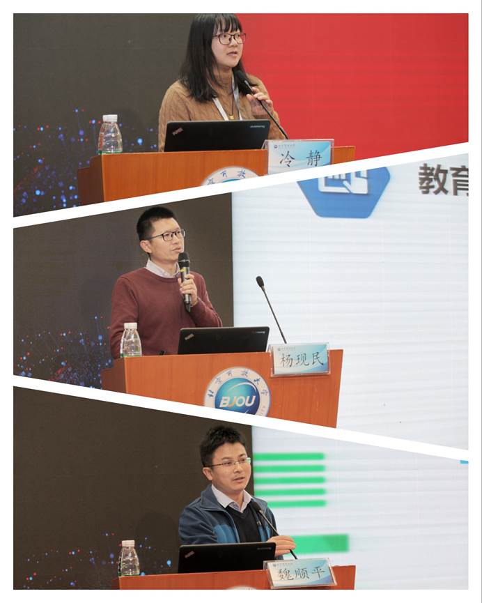 北京大学数字化学习研究中心主任汪琼教授、中国科学院软件研究所数据科学与数据智能研究中心主任丁治明研究员、taptap点点官方网站党委书记黄先开教授分别围绕技术创新助力开放教育质量提升,时空感知大数据技术在教育领导中的应用,以及运用人工智能技术助推开放教育转型发展等做了主题报告。