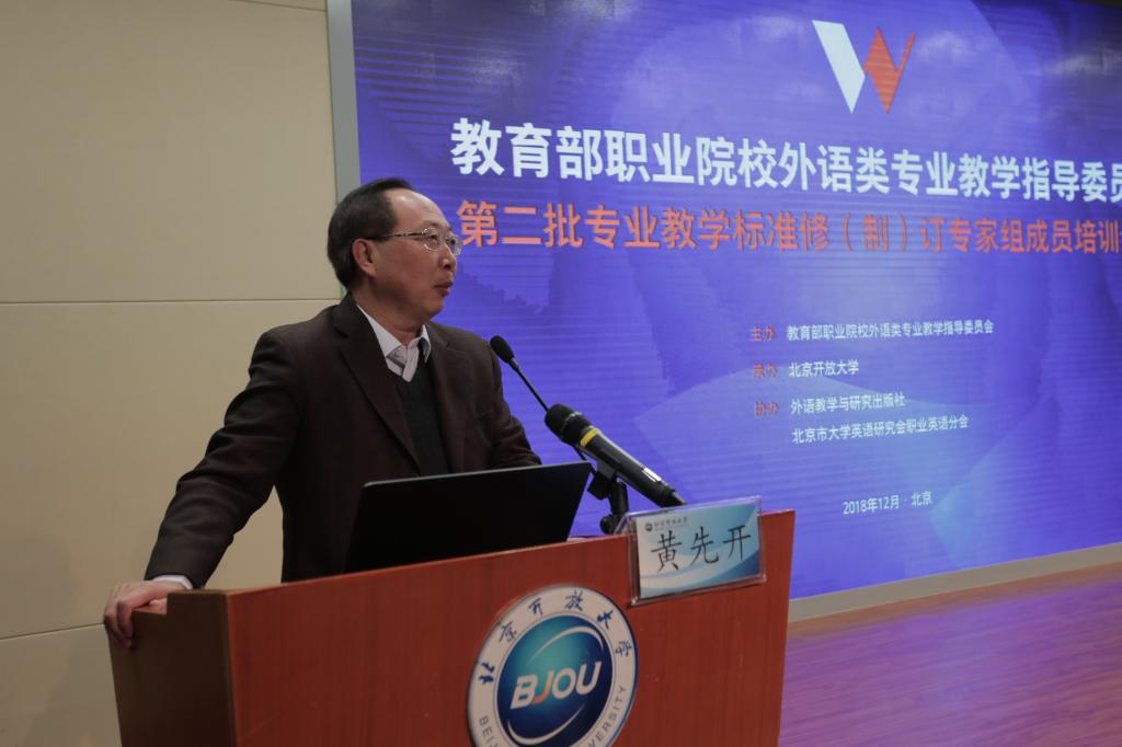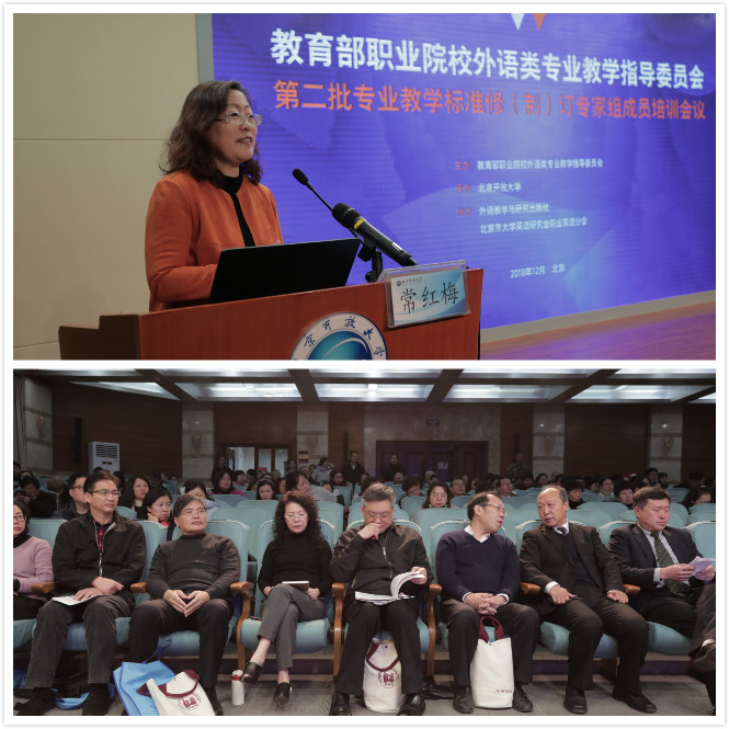 教育部职业院校外语类专业教学指导委员会主任委员刁建东教授、taptap点点官方网站党委书记黄先开教授、北京市教委职成处王东江处长、教育部行业职业教育教学指导委员会办公室常务副主任王国川教授等领导和专家出席本次会议。来自全国100余所高职院校、本科院校和多家行业企业的160余位第二批专业教学标准修(制)订专家组成员参加了会议。