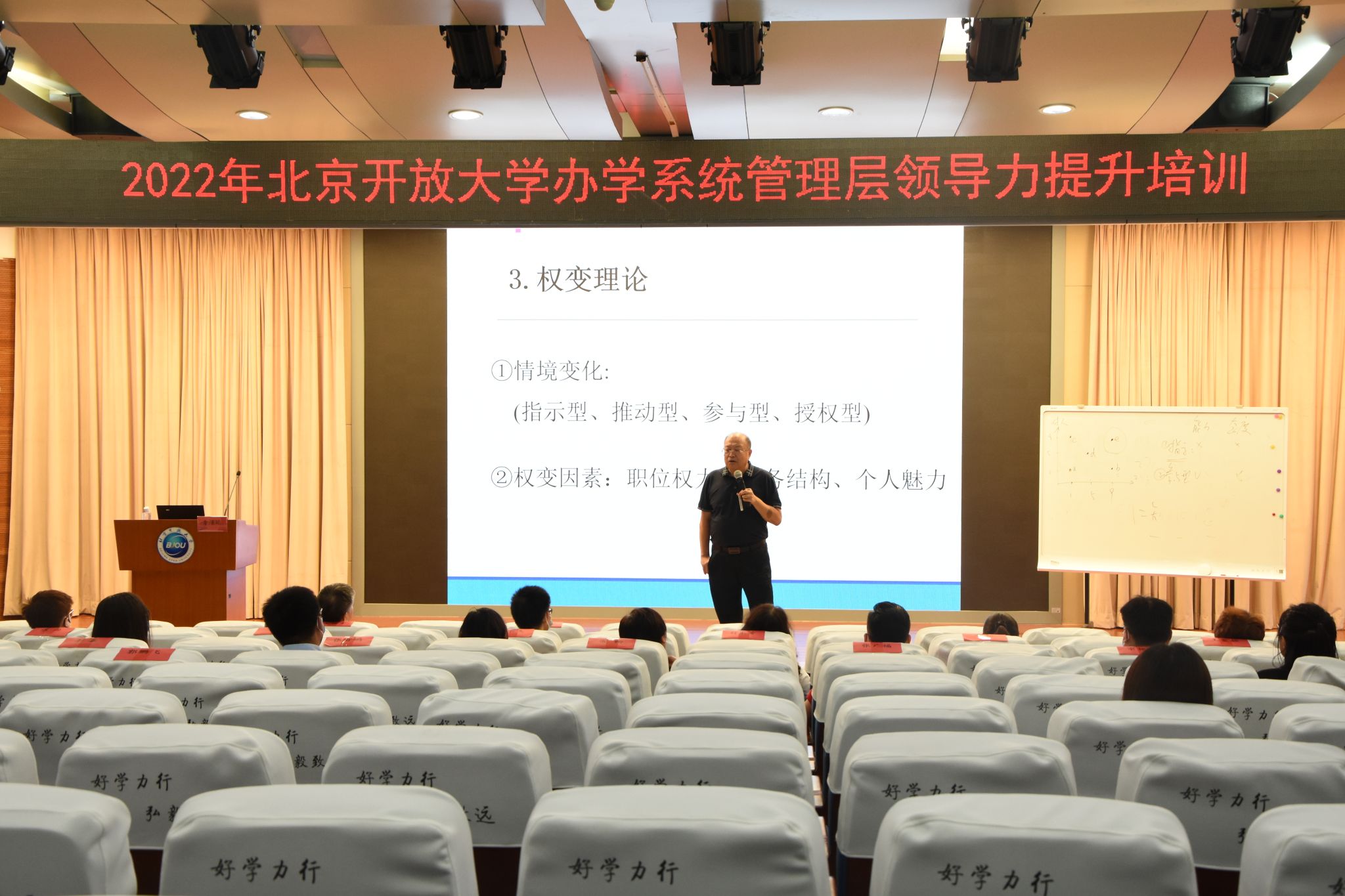 此次邀请校内外知名专家,采用“线上+线下”相结合的方式,就教育形势与政策、课程思政、领导艺术等六个专题进行讲授。参加培训的学员主要系办学系统分校(学院)、学习中心负责人及骨干教师。开班仪式由副校长李继延主持。