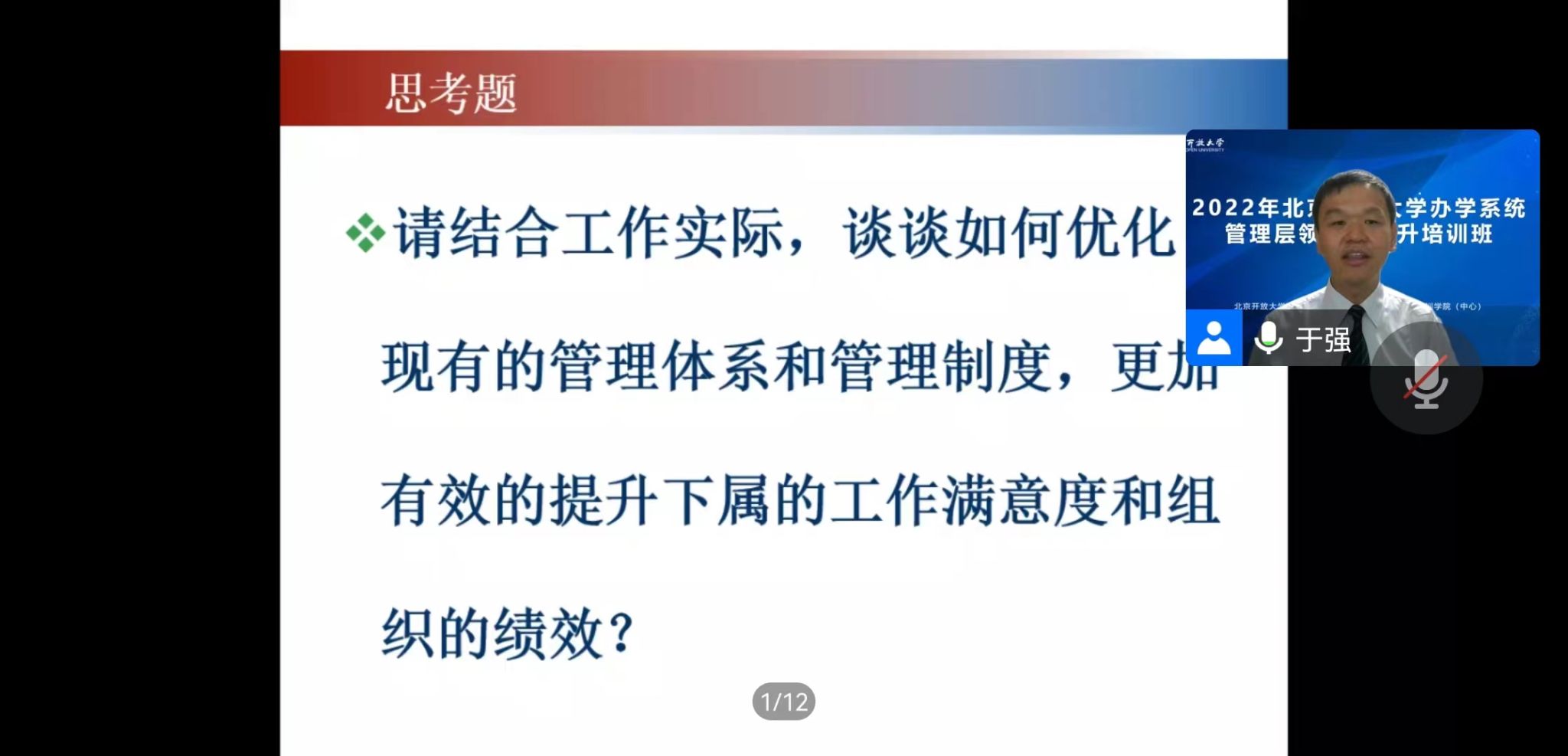 为全面落实教育部《关于办好开放大学的意见》战略部署,加强taptap点点办学系统建设,紧紧围绕学校十四五规划工作重点,培养一批专业化、高水平管理队伍,奋力开创办学系统建设新局面,学校于9月16日至29日,举办了办学系统管理层领导力提升培训。