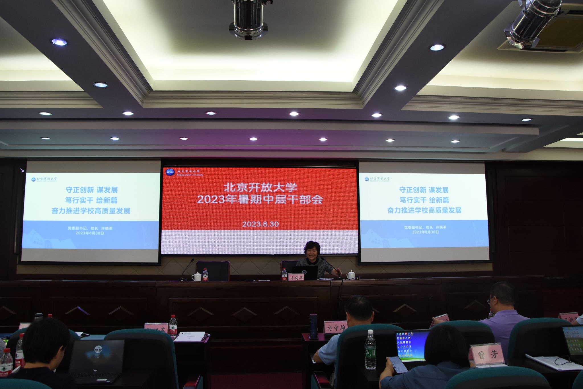 许晓革指出,上半年在党委坚强领导下,学校聚焦主题主线,突出重点任务,以高质量党建引领事业高质量发展,在学历与非学历教育教学、学分银行与信息化建设、教师干部队伍建设、学校内部治理等方面的重点任务都按照年初既定的工作目标稳步推进并取得实效。暑假期间,全体干部和教职工主动扛起责任担当,保证重点工作不断线,持续推动主题教育走实走深,高质量推进两委换届工作,高标准做好迎接国开办学评估各项工作,持续推进北京市中小学幼儿园“全程超前伴随式”家长培训项目,有序开展接诉即办、招生宣传和校园改造等工作。