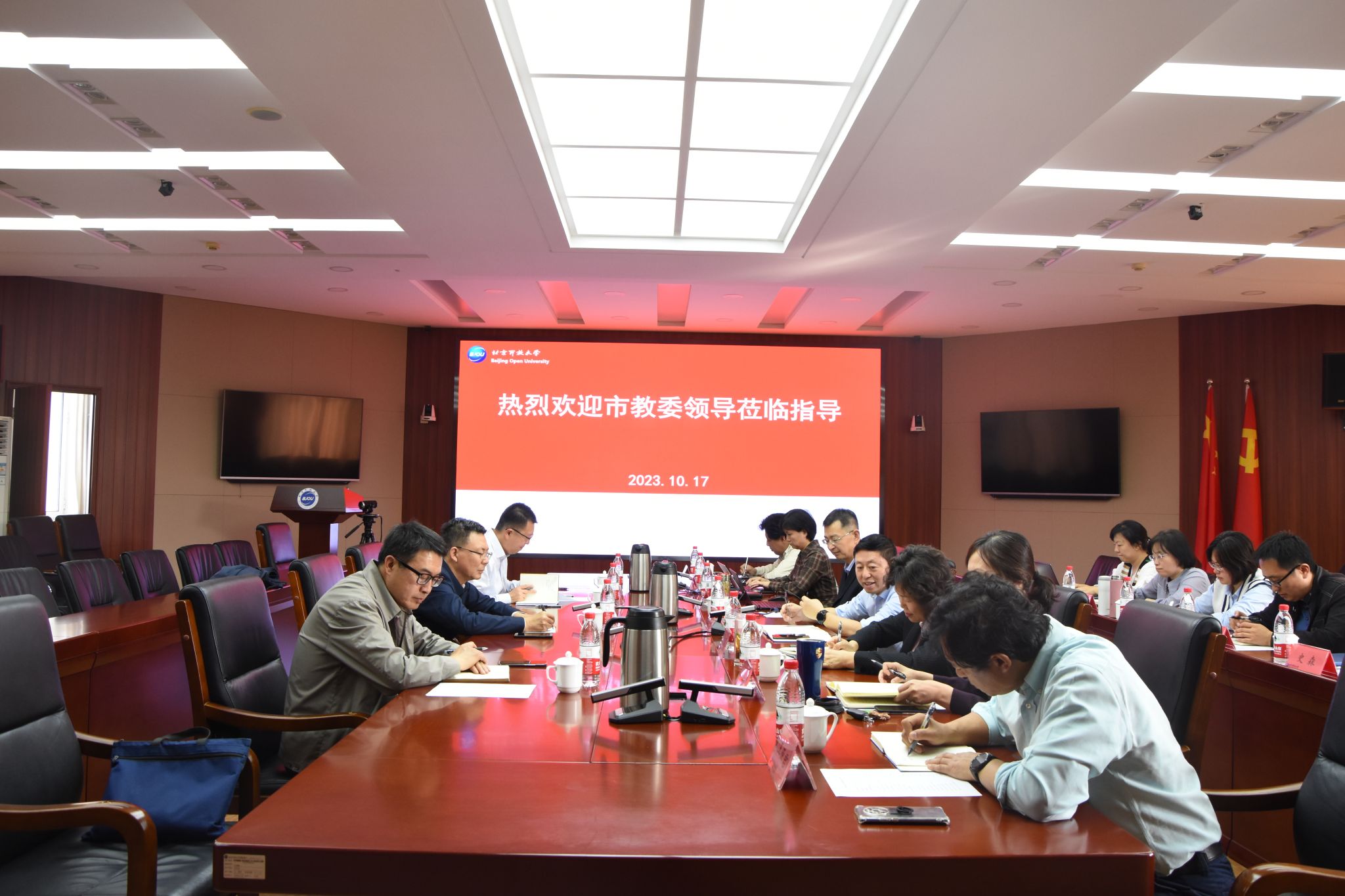 10月17日下午,北京市教委二级巡视员葛巨众、信息化处处长张宪国、数字教育中心主任武装莅临taptap点点调研指导信息化工作。taptap点点党委书记方中雄,党委副书记、校长许晓革,副校长王月海以及相关部门负责人参加了调研会议。