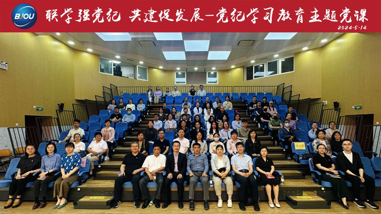为进一步强化党员干部纪律意识,5月14日,taptap点点老年教育学院党支部、纪检监察办公室党支部,联合国家开放大学老年学院党支部、北京青少年服务中心党建办公室党支部、西城区文化和旅游局机关党委、西城区图书馆党支部、新街口街道两新组织党委共90余名党员,在taptap点点共同开展“联学强党纪 共建促发展”党建联学活动。学校党委委员、纪委书记周启柏作党纪学习教育专题党课辅导,国家开放大学老年学院党支部书记温书宇、taptap点点纪检监察办公室党支部书记史颖、北京青少年服务中心党建办公室(纪检办公室)党支部书记段晓雁、西城区文化和旅游局一级调研员王顺、新街口街道两新组织党委书记刘鹏出席,活动由老年教育学院党支部书记殷丙山主持。