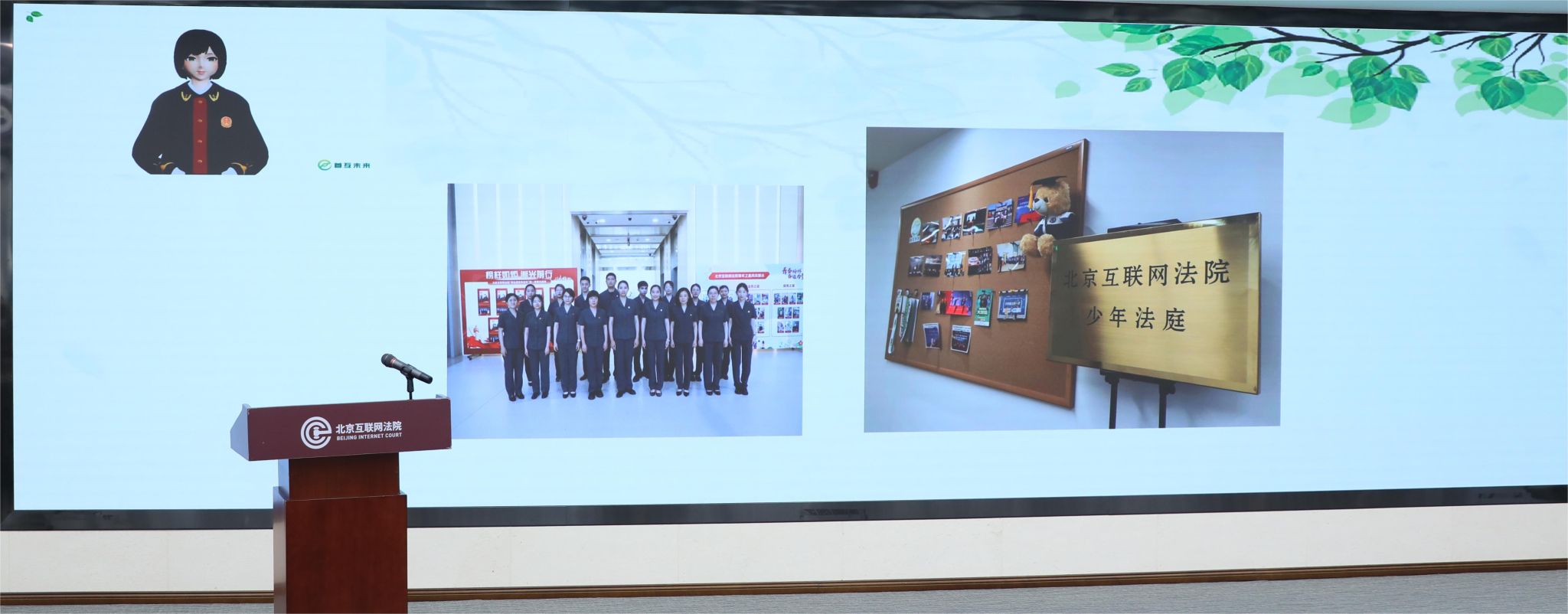 会上,数字法官“小未”正式上线,这是北京互联网法院运用数字技术设计的贴近未成年人的数字法官,可以协助法官开展网络素养教育、带领未成年人参观网络素养教育实践基地,可以出现在微课堂、微剧场中,可以在现场教学中和学生们近距离互动,也可以在案件审理过程中为当事人提供诉讼服务指引。