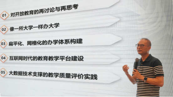 和江苏开放大学的深度交流成为此次培训的亮点。江苏开放大学教务处朱袆处长以《数智赋能,体系协同:奋力推进开放教育高质量发展》为题,分享江苏开放大学在数智时代推进开放教育高质量发展的转型思路与改革实践,为taptap点点教育教学工作提供可参考借鉴的经验样本。江苏开放大学社会教育处、信息工程学院相关负责人及教师代表,与参训学员围绕“数智时代开放教育的挑战与机遇”展开深度对话,进一步促进思想碰撞与经验互鉴。