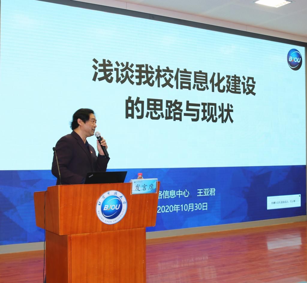 孙月亚做了题为“加强业务融通 建设学分银行 推进开放大学创新发展”的专题发言。她从强化全校统筹、落实各平台责任和开展需求征集、管理与反馈三个方面详细介绍了学校信息化业务统筹工作现状,并对学分银行建设面临的机遇与挑战及工作进展予以讲解。她表示,学分银行体系建设是一个循序渐进的过程,需要坚持问题导向并且强化目标管理。