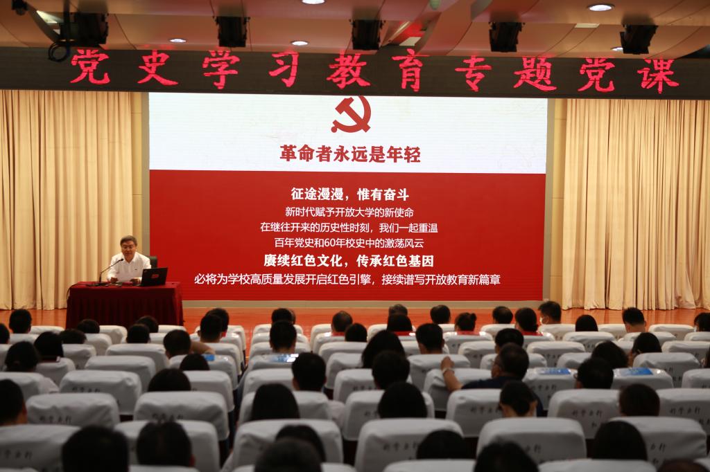 征途漫漫,惟有奋斗。在继往开来的历史性时刻,赓续精神谱系,传承红色基因,必将为学校高质量发展开启红色引擎,接续谱写开放教育新篇章。