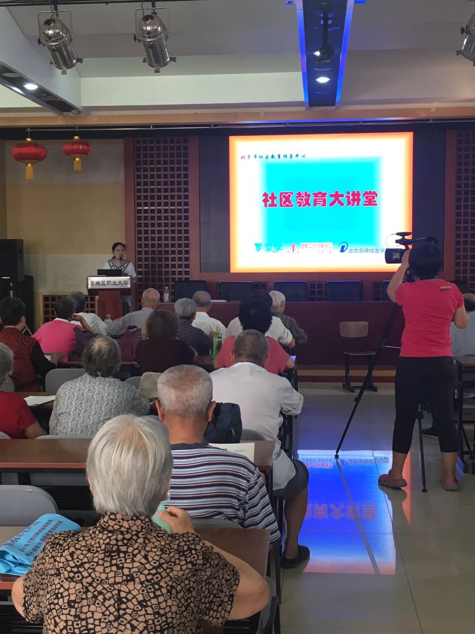 9月13日上午,由北京市社区教育指导中心(社会教育学院)“社区教育大讲堂”同时走进东城区社区学院和通州区社区学院。首次开讲的两堂课主要请专家为社区居民讲授养生健康和中华古典诗词韵律方面的知识。本次东城区社区学院和通州区社区学院承办的社区教育大讲堂推出的课程内容广受市民欢迎,两次课堂参加市民来自社区各年龄层。