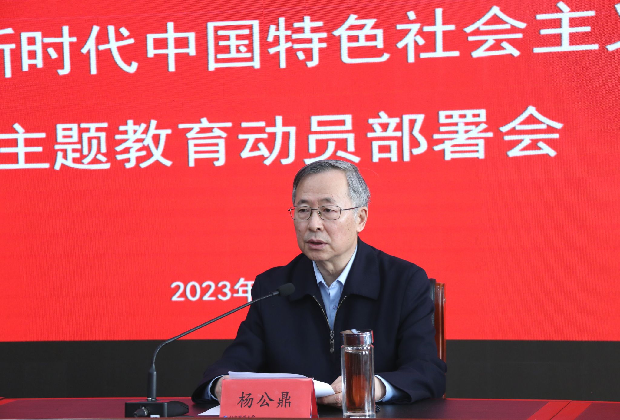 杨公鼎在动员讲话中从三个方面进行部署,一是要深刻认识开展主题教育的重大意义,切实增强政治自觉、思想自觉和行动自觉。开展主题教育是统一全党思想意志行动,始终保持党的强大凝聚力、战斗力的必然要求;是推动党员干部积极担当作为、不断开创事业发展新局面的必然要求;是深入推进全面从严治党、以党的自我革命引领社会革命的必然要求。二是要深刻领会主题教育的目标任务,以首善标准抓好各项工作落实。在学习教育中,要深入“学思想”,做到学深悟透、凝心铸魂;着力“强党性”,做到深入一线、调查研究;突出“重实践”,做到深刻检视、全面整治;努力“建新功”,做到开拓创新、推动发展。三是要认真做好主题教育的组织领导,确保各项工作取得扎实成效。把深入学习贯彻习近平新时代中国特色社会主义思想这一根本任务作为主线,始终对标对表主题教育6个目标任务有的放矢,始终对照5个方面重点问题校准偏差,融会贯通、一体推进5个方面措施。聚焦学校“创新发展年”各项要求,围绕学历教育创优提质、非学历教育提量增效、“双高”人才选育、科研赋能、推进“三全育人”“五育并举”、建设网络思政、完善新型大学现代化治理体系、以高质量党建引领高质量发展等重点任务,推动解决发展难题。