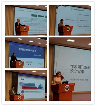 来自各学院和学刊编辑部的5位老师围绕“如何将科学研究与教学工作有机融合”进行分享。人文与教育学院教师黄振中进行了“自主学习对在线学习效果的影响机制探究——传统议题中的一点‘新’思考”的专题发言,针对如何在教学工作的基础上进行论文选题和写作进行生动剖析。商学院教师孙丹进行了“寻找教学和科研的和谐之美——一名商学院老师的选题避坑指南”的专题发言,分享了自己教研选题的体会与思考。城市管理学院教师蒋广宇进行了“教研论文写作与发表——个人经验分享”的专题发言,分享了自己如何进行一篇教研论文的写作。科学技术学院教师董黎明进行了“教研论文写作初探——规范中发展”的专题发言,基于自身开展教学研究的多年实践,介绍了论文发表过程中寻刊、打磨、投稿等方面的方法与技巧。校刊编辑刘春萱进行了“学术期刊编辑视角下的论文写作”的专题发言,她从学术期刊编辑的视角,基于论文发表背后的实际案例,完整规范地展示了一篇好论文所应该具有的良好选题、扎实研究过程、以及对研究结论的总结提炼。