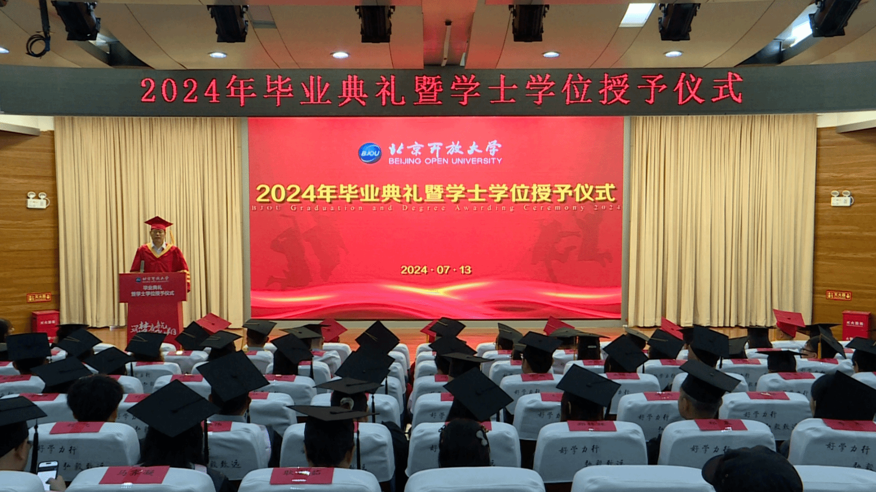 7月13日上午,学校举行2024年毕业典礼暨学士学位授予仪式。校领导班子成员、校内各学院及相关部门领导、教师代表、办学体系单位教师代表及学生代表近200人参加了现场活动,有近四万人通过云端收看典礼盛况。活动由学校副校长徐志立主持。