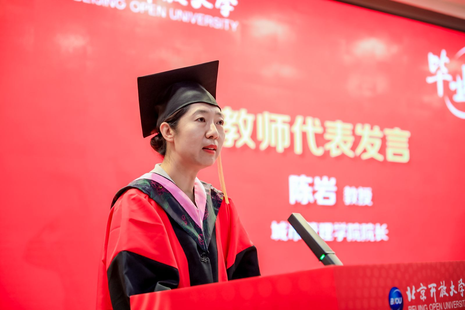 教师代表,北京市教学名师陈岩教授将开放、韧性、执着的理念和精神分享给毕业生,寄语同学们在未来的工作生活中,脚踏实地、持之以恒。